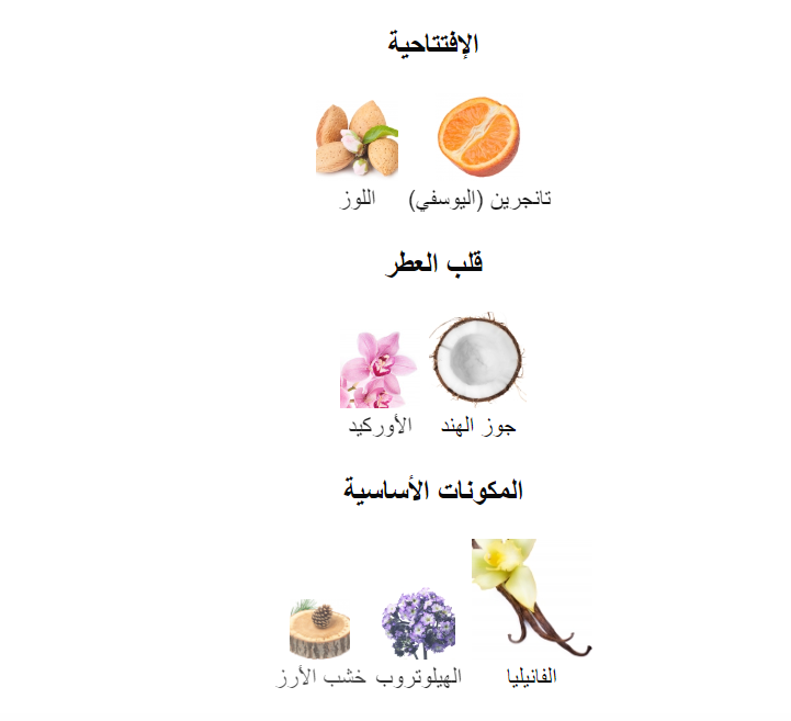 ومع استمرار هذه الرحلة العطرية، ينكشف قلب العطر بمزيجه الفريد من الكنوز الاستوائية. تخيل أنك تدخل واحة مخفية حيث تتمايل أوراق النخيل بلطف مع النسيم، ويقدم جوز الهند فضله الحليبي. يمتزج جوهر جوز الهند الكريمي المورق بشكل مثالي مع جاذبية الأوركيد الغريبة. هذه النوتة الزهرية جميلة وحسية .